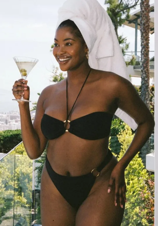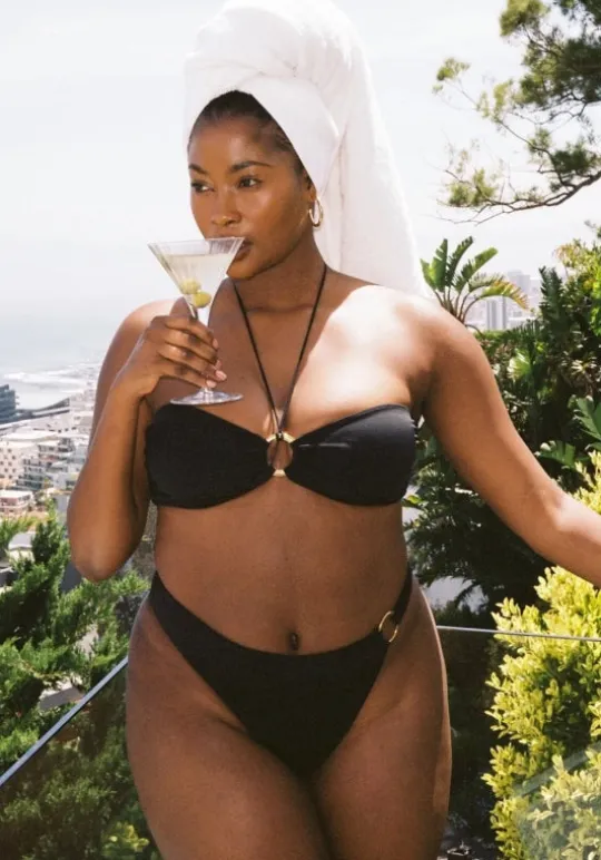 Look effortlessly chic in the Acapulco Bikini in Black by beachwear designer Away That Day! This stunning swimwear features a flattering bandeau top with elegant ring detail and supportive side boning. Paired perfectly with the classic Fiji bottoms!