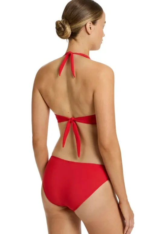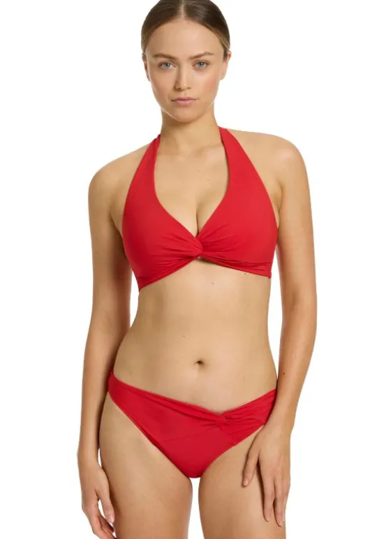 Turn heads in JETS bestselling Twist Front Bikini in Rosso. The halterneck top features a tie back with optional padding and side boning for support, and is suitable on all bust sizes up to an E cup. The twist front bottoms offer fuller coverage.