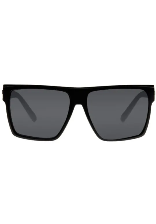 Turn heads in the For Dirty Magic sunglasses in black rubber by designer Le Specs. The oversized rectangle styles features polarised smoke flash lenses with a classic black frame. A must have addition to your look this season.