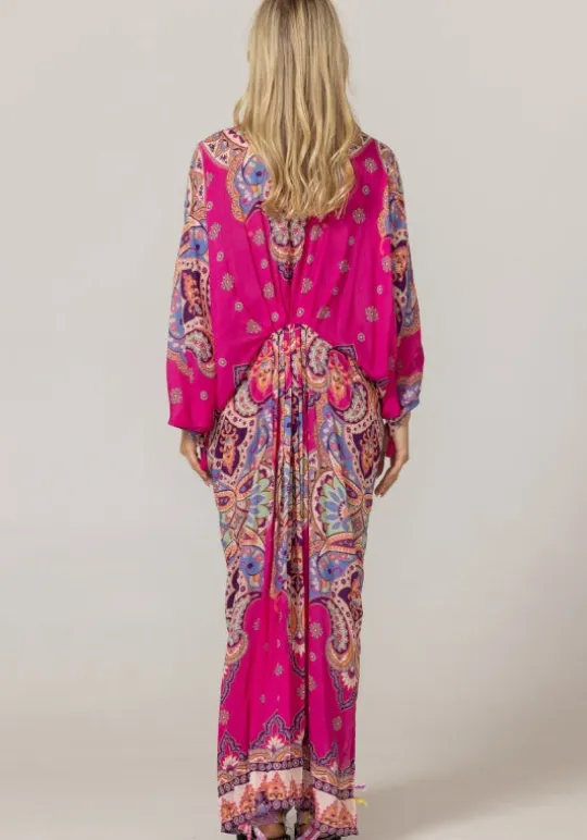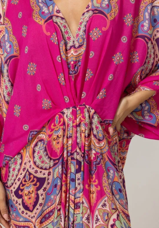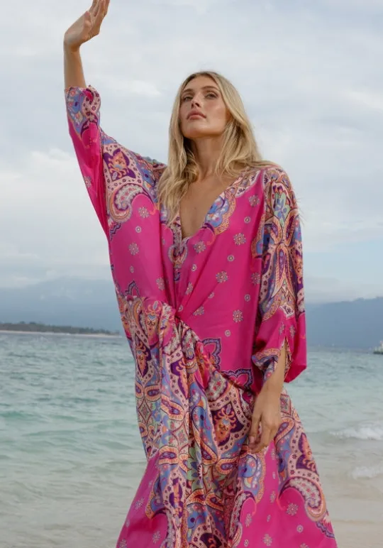 Indulge in pure bohemian chic with the Billie Kaftan by resortwear designer Miss June. This longer style kaftan beautifully blends elegance with freedom, enhancing your silhouette in a delicately tailored fitted cut. Escape in its dreamy pink tones and experience a timeless elegance that embodies an ode to travel.