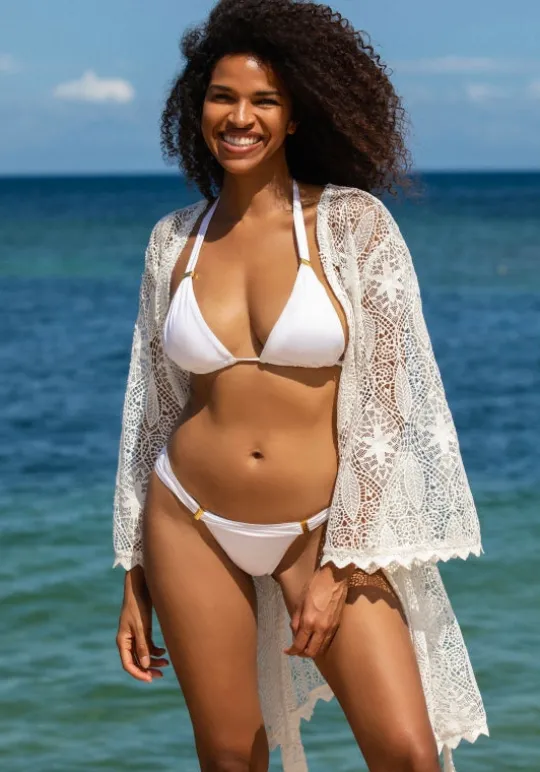 Indulge in summer with the St Tropez Lace Kimono by swimwear designer Naia Beach. Perfectly crafted to layer over your favourite NAIA swimwear, the relaxed fit and exquisite lace trim bring a touch of glamour to sun-kissed skin. From beach to bar, this versatile piece will surely steal your heart.