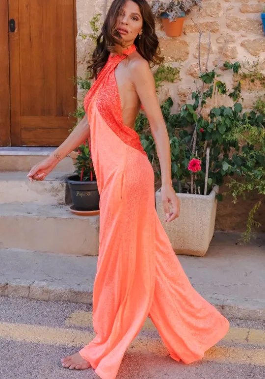 Stay chic and cool in the Colour Block Jumpsuit Watermelon by resortwear designer Pitusa! This jumpsuit features a contrast hem, halter neck, and low back for a stylish and comfortable look. Perfect for any summer occasion, you’ll love the pop of colour and the flattering fit.