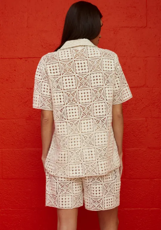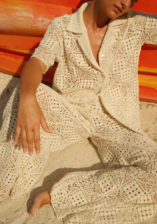 Elevate your beach wardrobe with the Crochet Beach Shirt by resortwear designer Pitusa. Crafted with cream crochet fabric, this versatile beach shirt can be paired with the crochet shorts or pants for a chic and effortless look. Add a touch of luxury to your beach ensemble and stand out from the crowd.