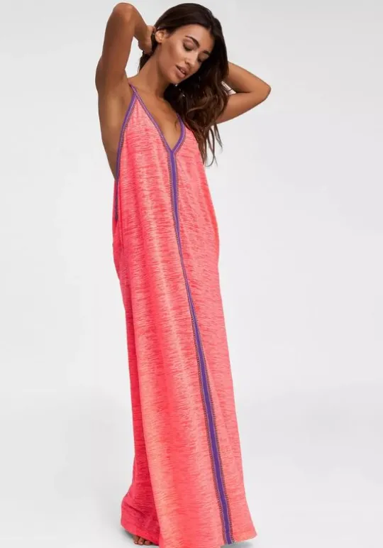 Make a style statement in the gorgeous Inca Sun Dress in Hot Pink by beachwear designer Pitusa. Made from soft semi sheer jersey, it has a beautiful embroidered panel round the neckline and middle of the beach dress giving it a pop of colour. Available in one size (fits 8-14) in 3 lengths Petite, Standard & Tall. Length: Tall 57.2in / 145cm | Standard 54.2in / 139cm | Petite 53.2in /136cm from shoulder.