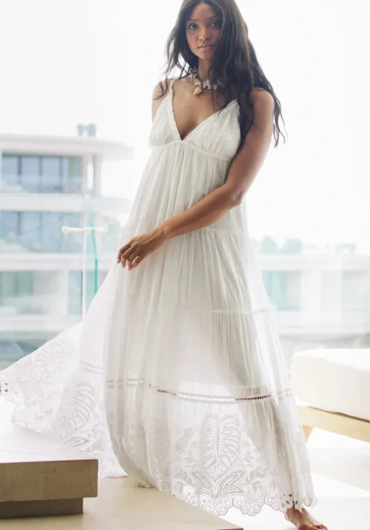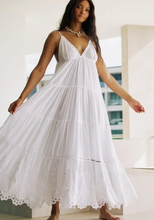 Effortlessly transition from the beach to brunch in the timeless Halle Dress by Beachwear Designer PQ Swim. Its lightweight fabric flows gracefully with every step, while the V-neckline and adjustable straps add a touch of flair. Perfect for draping over your swimsuit or dressing up for a seaside outing. This white beach dress is a must have addition to your holiday wardrobe!