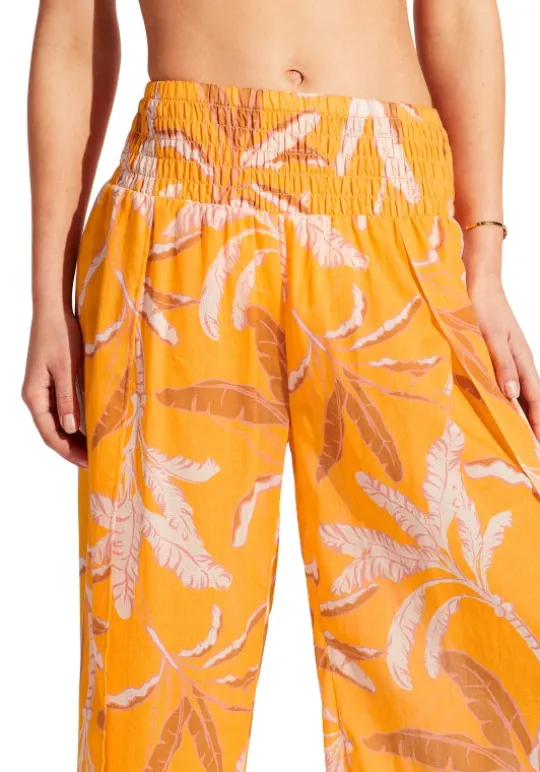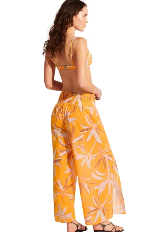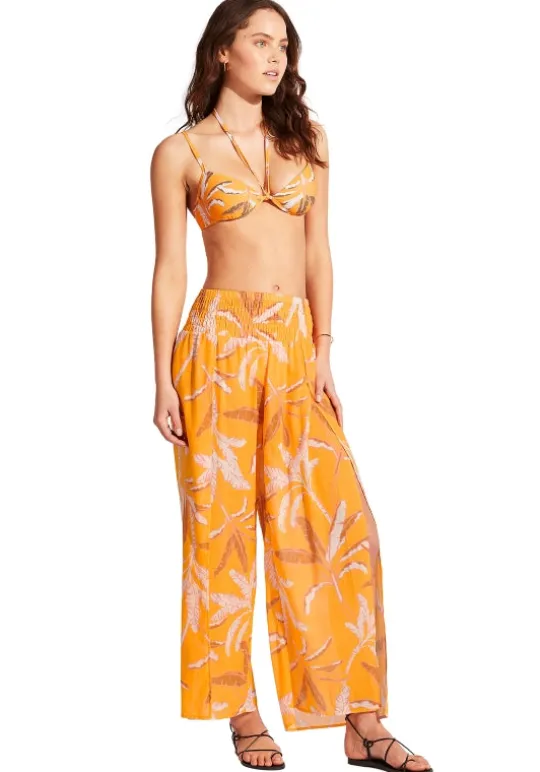 The Palm Paradise Beach Trousers in Rockmelon by swimwear designer Seafolly is a must have for your next summer get away. These lightweight, breezy pants feature a ruched elasticated waist, with sexy splits to the thigh. Paired with a gorgeous Palm Paradise matching bikini to complete the holiday look.