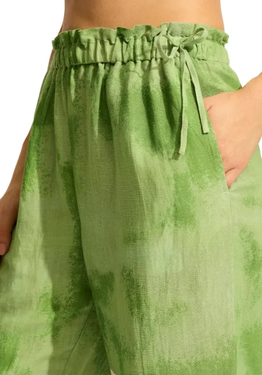 Complete your holiday wardrobe with the Sunray Beach Trouser in Sage by beachwear designer Seafolly. Made from soft lightweight fabric, these beach trousers are an easy to wear style which features a drawstring waist and side pockets.