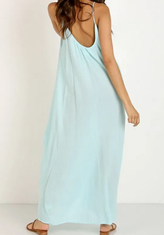 For an effortless beach look choose the Tulum Maxi beach dress in Ocean by resortwear designer 9Seed. Made from airy gauze cotton, this stylish maxi beach dress is semi-sheer with slim shoulder straps and undone raw edging. Available in one size (fits 8-14)