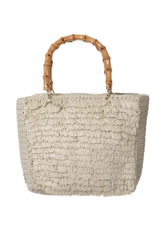 Complete your summer look with the Diamante Bag in Cream by Chica Bags. The perfect addition to your summer wardrobe, this stylish raffia bag in cream features bamboo handles and a fabric inner bag with zip fastening.