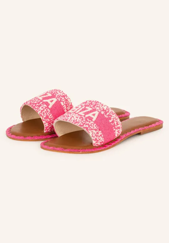 Complete your summer look with the IbizaSandals in Hot Pinkby De Siena. These hand crafted sandals feature a round toe with embroidered detail, a beaded strap and leather sole with a small heel.
