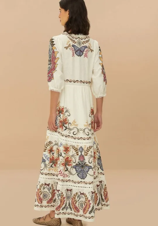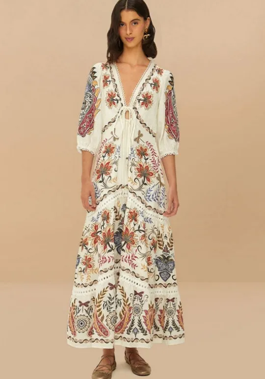 Discover elegance and whimsy with the Off-White Boho Glam Maxi dress. Crafted from eco-responsible LENZING™ ECOVERO™ fibers, it features delicate lace trims and playful embroidered motifs. The relaxed silhouette and mesmerizing floral patterns offer effortless grace. Embrace bohemian elegance and celebrate the fusion of nature and style.