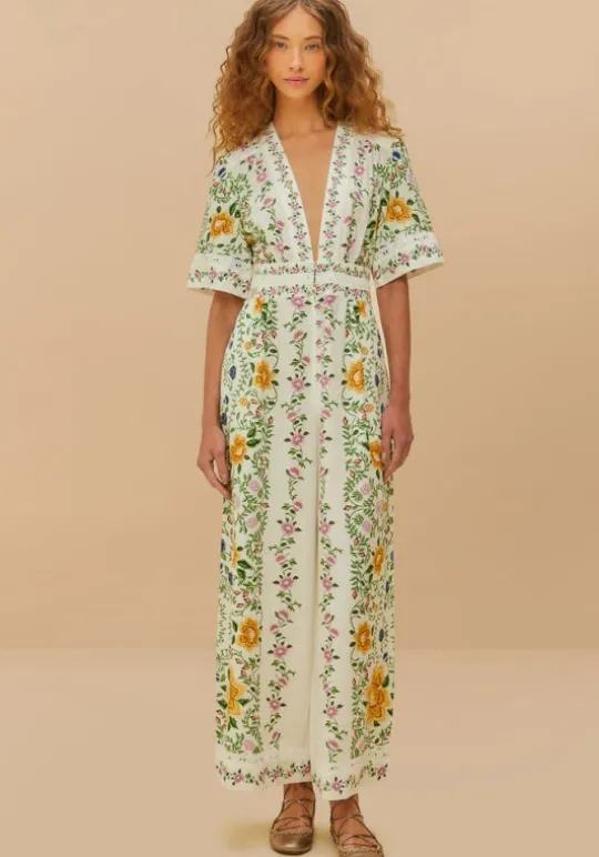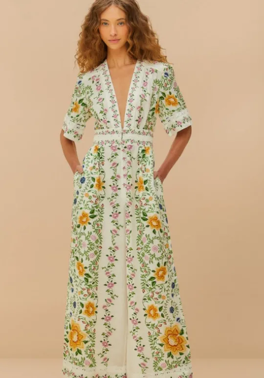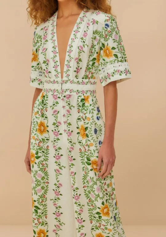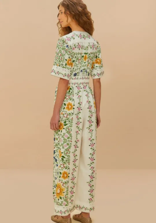 Step into a world of charm with the Folk Floral Jumpsuit by resortwear designer Farm Rio. Delight in its playful V neckline, responsible materials, and enchanting floral patterns. The eco-friendly LENZING™ ECOVERO™ fibers reduce emissions and water impact by 50%, making this jumpsuit a stylish and conscience choice for any occasion.