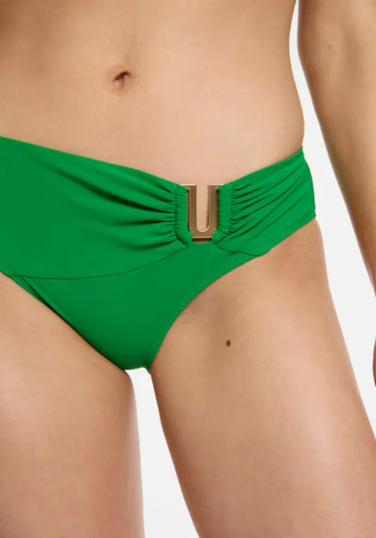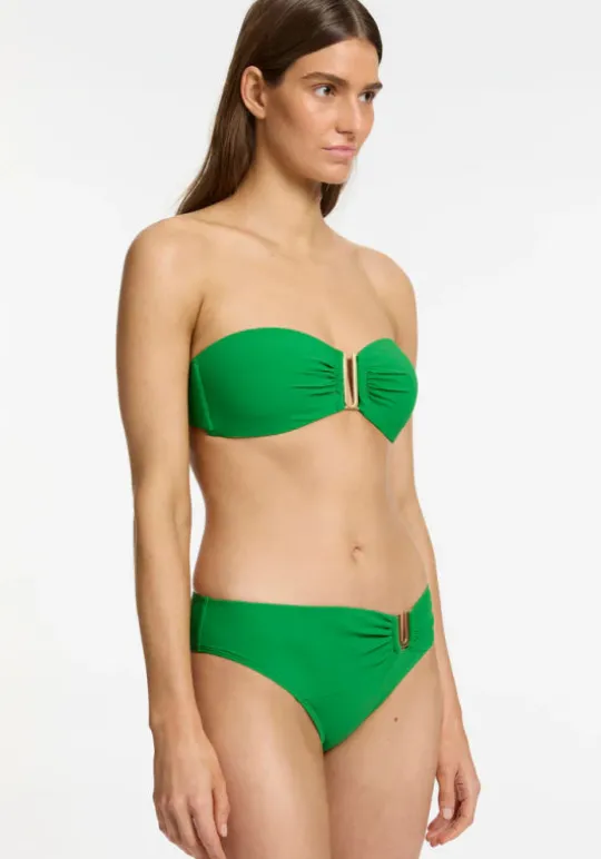 Turn heads in the Jetset Bandeau Bikini in Flora by swimwear designer Jets Australia. The timeless bandeau bikini top features a U bar detail along with removable cups and optional halter ties for support. Pair with U trim pant with matching gold trim details for a stylish poolside look.