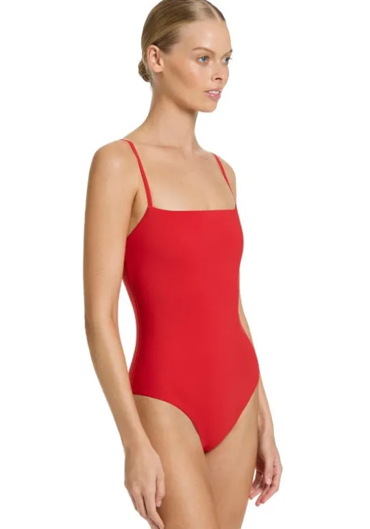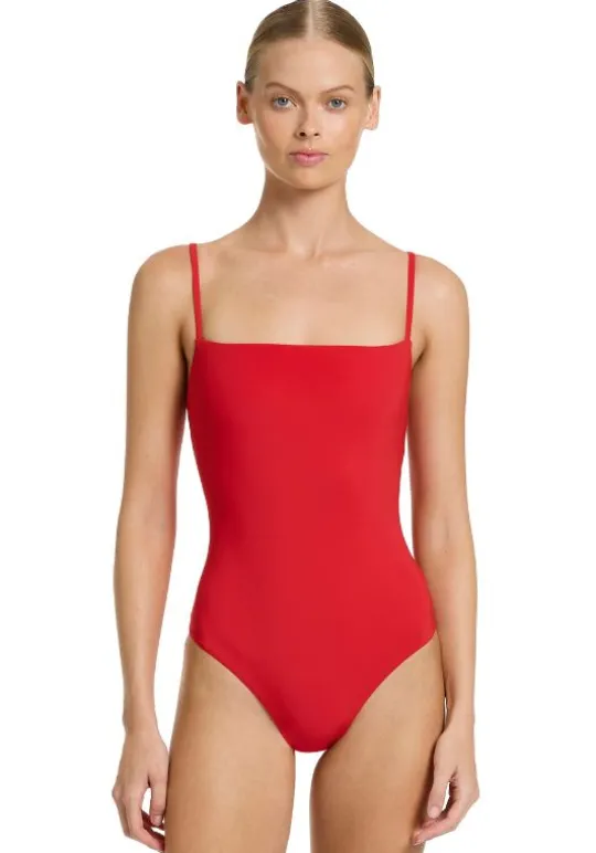 For an effortless poolside look choose the Jetset Tank Swimsuit in Rosso Rosso by swimwear designer Jets Australia. The classic silhouette is complete with a seamless design and smooth square scoop neckline. Finished with thin adjustable straps, removable cups and a shelf bra for support and a scoop back. A must have addition to your vacation wardrobe.