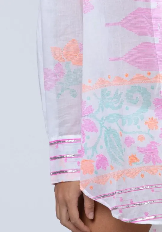 The Dhaka Print Shirt in Multi by Juliet Dunn is your go-to beach coverup. Made from the softest lightweight cotton, this classic beach shirt is easy to wear and instantly stylish. Wear over your swimsuit at the beach or wear unbuttoned over a slip dress for exploring on balmy days.
