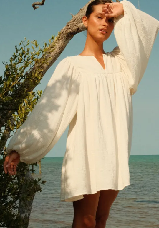 Introducing the Boho Sleeve Mini Dress, by resortwear designer Pitusa in classic white. With its flowy sleeves and mini length, this dress offers a laid-back, yet stylish look. Perfect for any vacation or weekend getaway, add this beach dress to your wardrobe for effortless and chic outfits.