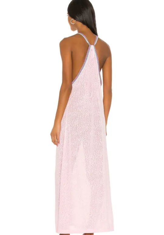 Make a style statement in the gorgeous Cheetah Sun Dress in Light Pink by beachwear designer Pitusa. Made from soft semi sheer jersey in a cheetah print, it has a beautiful embroidered panel round the neckline and middle of the beach dress giving it a pop of colour. Available in one size (fits 8-14) in 3 lengths Petite and Standard. Length: Standard 54.2in / 139cm | Petite 53.2in /136cm from shoulder.