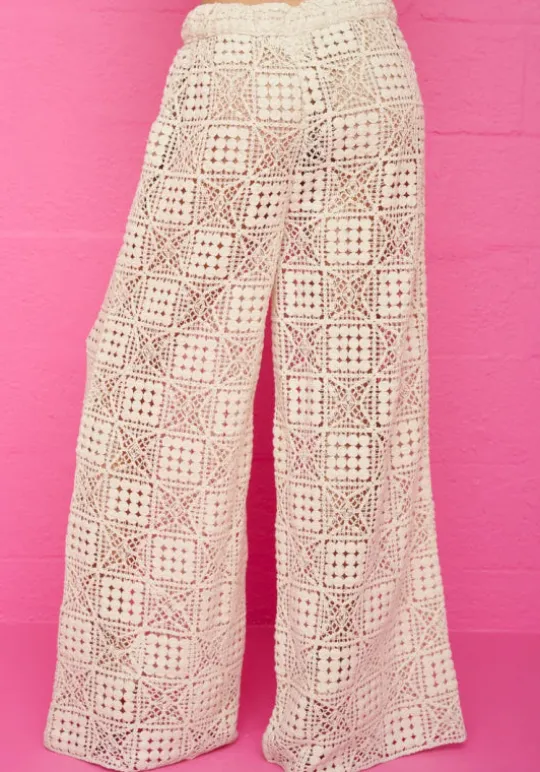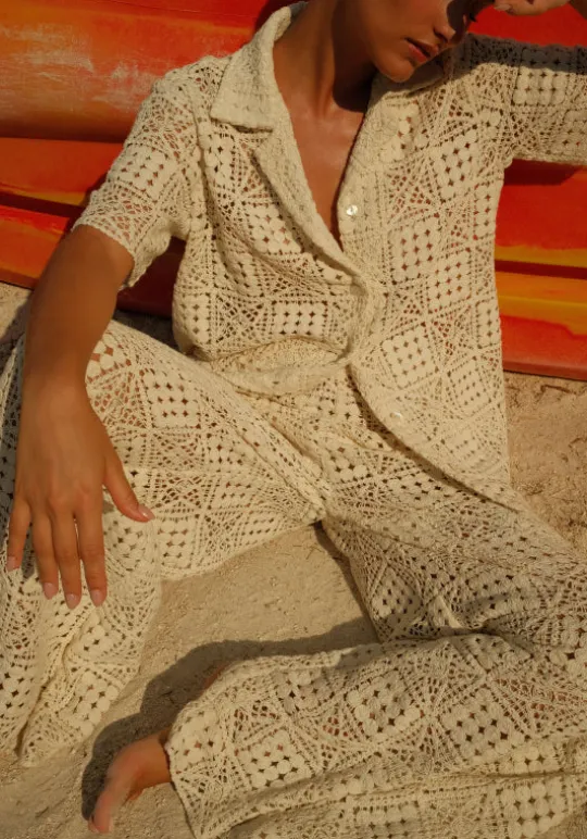 Upgrade your beach wardrobe with these versatile Crochet Beach Pants in Ecru by Resortwear Designer Pitusa. Pair them with the matching Crochet Shirt for an effortlessly chic look. Comfortable and stylish, these pants are perfect for a day at the beach or a night out.