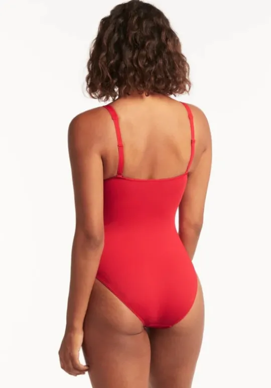 The Essentials Twist Front Multifit Swimsuit in Red by swimwear designer Sea Level, featuring adjustable and convertible straps for ultimate support. Made from Sea Level’s signature sustainable essentials fabric perfect for the eco conscious shopper.