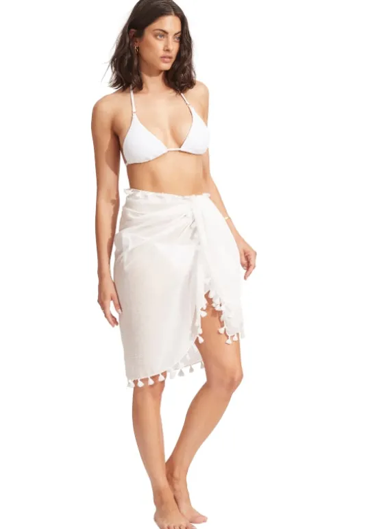 Add a chic cover up to your beach look with the White Sarong by beachwear designer Seafolly. Made from super soft gauze cotton with tassel trim, this chic white sarong is large enough to be tied lots of different ways to suit.